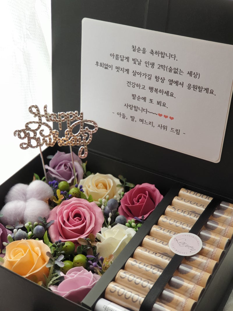 생일선물이나 환갑, 칠순선물로 꽃다발액자를 주로 판매해왔고, 생일 꽃다발액자 포스팅에 사진액자도 포함해서 조금씩 보여드리고 있습니다만, 점점 사진액자 주문이 늘어나고 문의도 많아지고 있어 보기좋고 예쁘게 사진액자만 따로 모아서 보여드리겠습니다 ^ ^ 로로캔드리에서 판매하는 액자 디자인은 총 4가지입니다. 사진의 액자는 그중 하나입니다