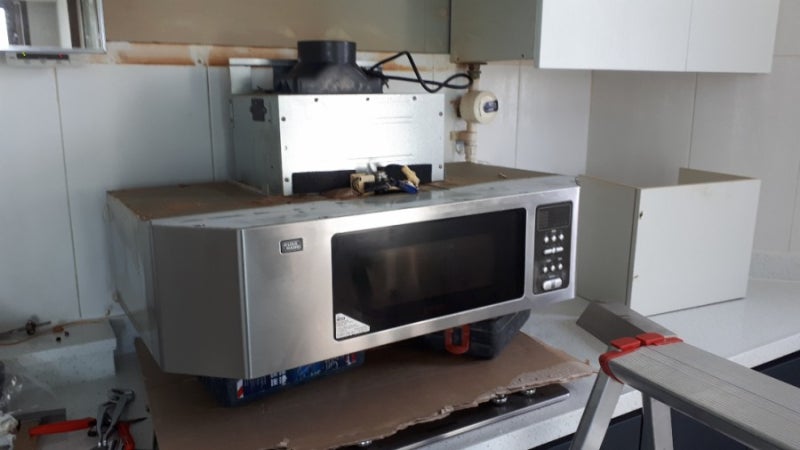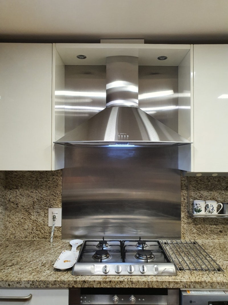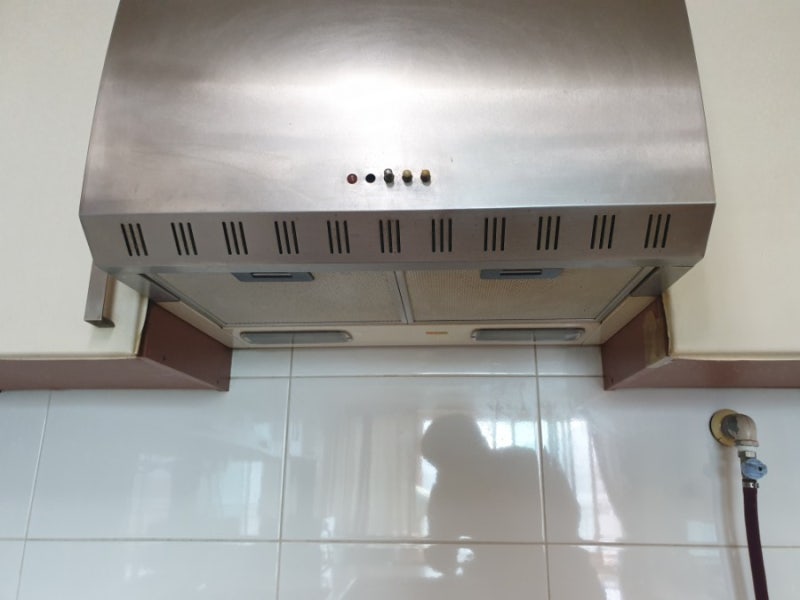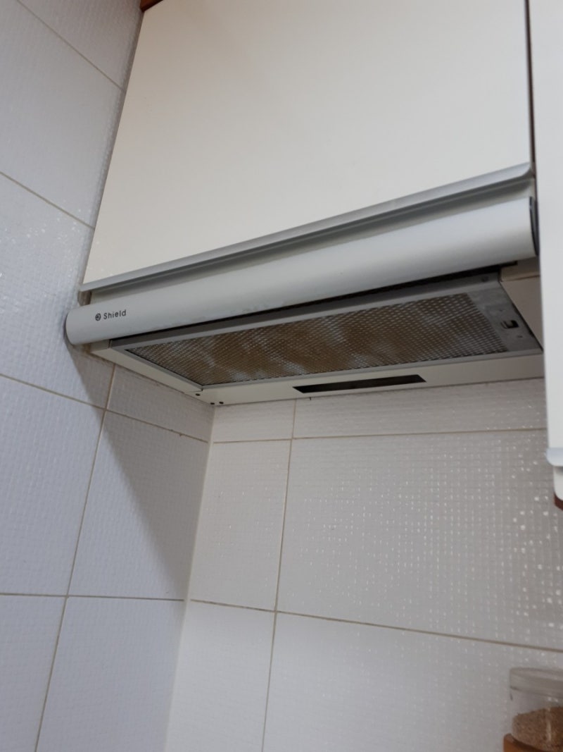 새 후드 설치 전 기름때를 청소한 모습.^^깨끗한 상태로 새 후드가 설치되는 것이 기분 좋습니다!