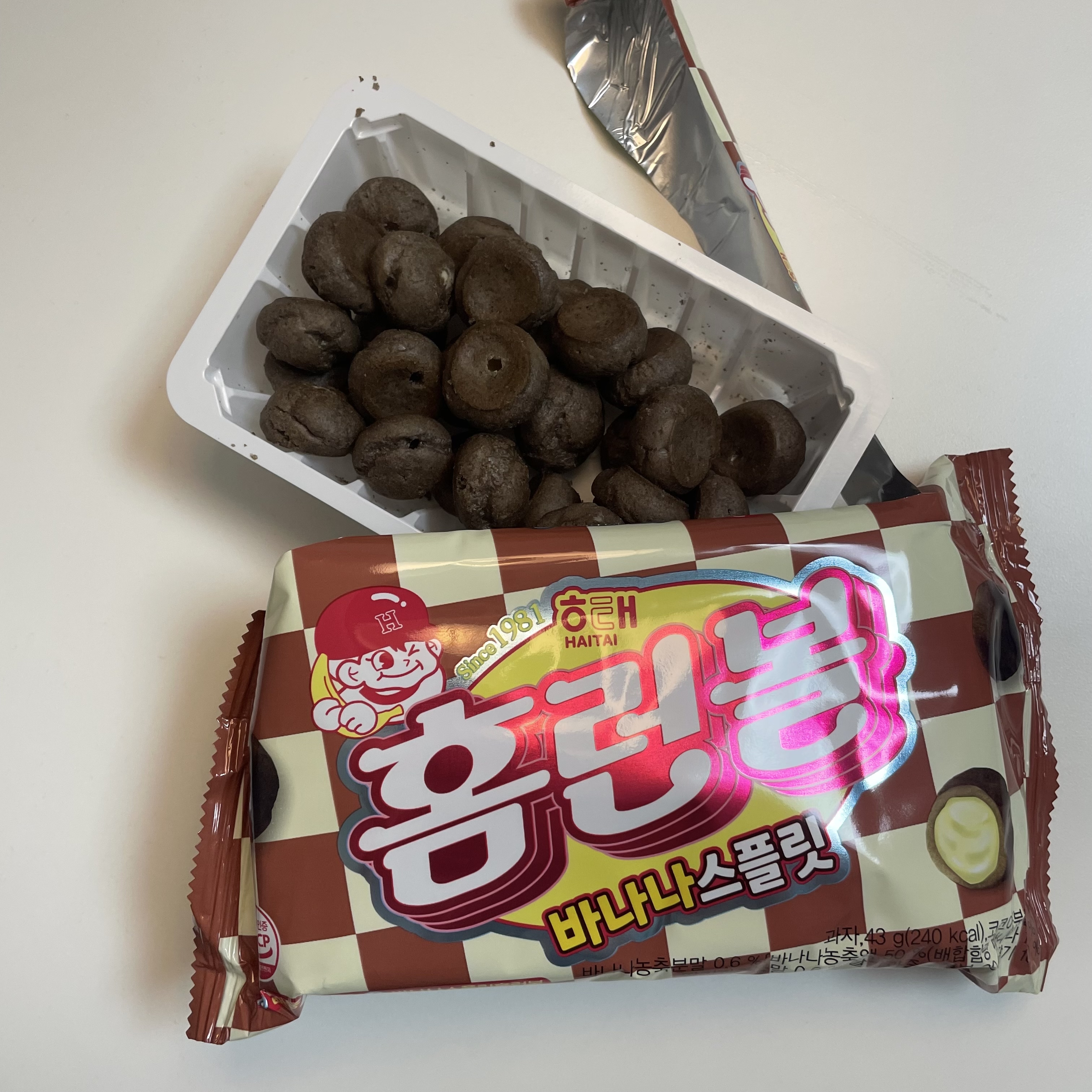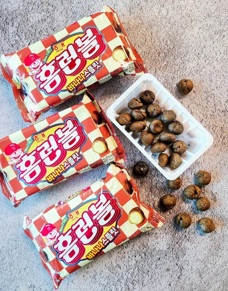 가벼운 과자를 한 알 먹어보니 부드럽고 바삭바삭한 식감이 너무 좋아서 겉에 있는 과자는 달지 않지만 속 크림이 달콤해서 전체적으로 달콤한 맛이 진하게 느껴지는 편이었어요. 제 기억 속 홈런볼의 식감보다 유난히 바삭바삭한 느낌이었어요?