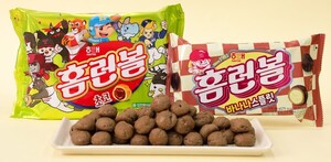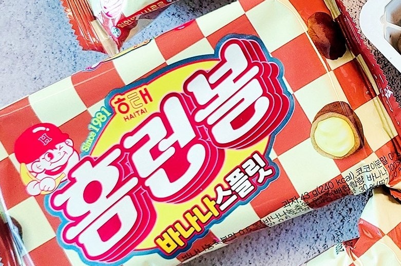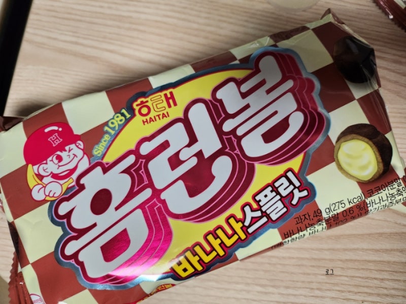 겉에는 초코, 속에는 딸기 바나나 크림으로 된 것 같은 홈런볼 바나나 스플릿 맛이 궁금하네요~