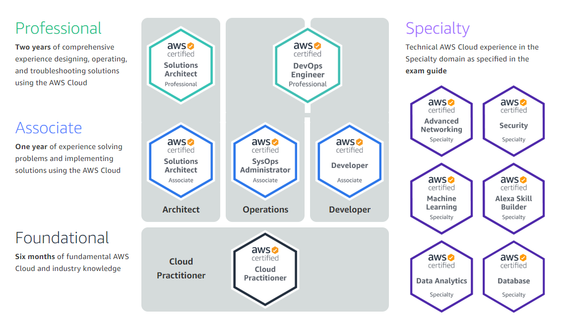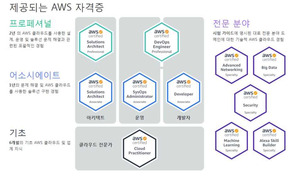 DevOps 엔지니어 자격증 취득을 위해서는 기초(Cloud Practitioner) → 어소시에이트(SysOps Administrator, DevOps Engineer) 순으로 준비하면 된다. 추천!IaaS 클라우드 컴퓨팅 자격 11종 https://www.ciokorea.com/tags/13333/IT%20%EC%9E%90%EA%B2%A9%EC%A6%9D/27349